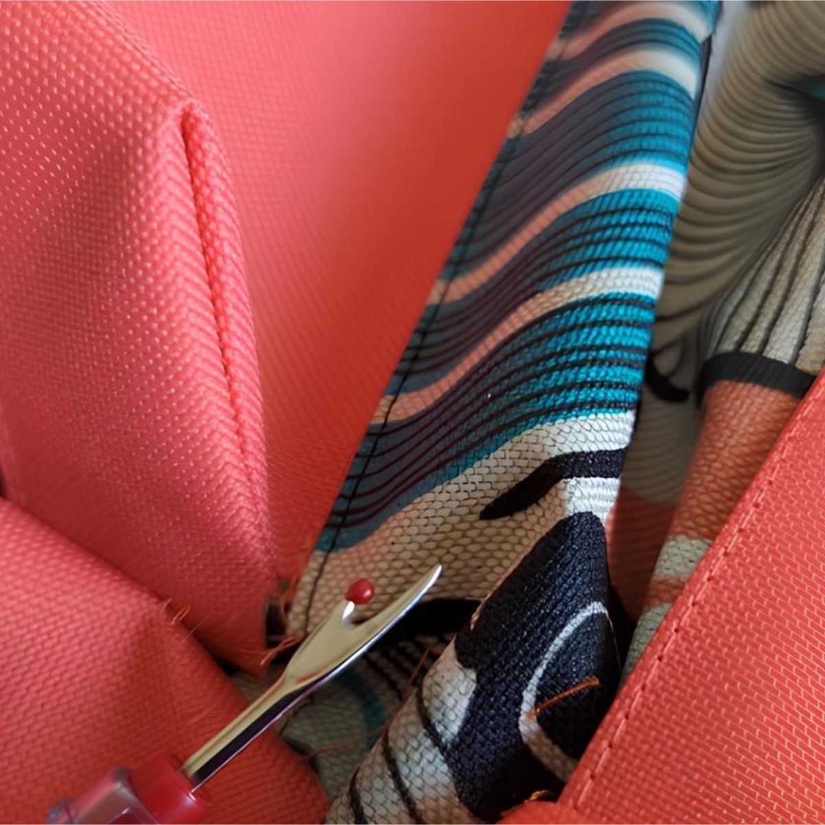 Quelle frustration ! Après la pose de mes deux bandes, j’ai découvert deux trous visibles aux jonctions. J’ai attrapé le découd-vite… et j’ai dû tout recommencer.