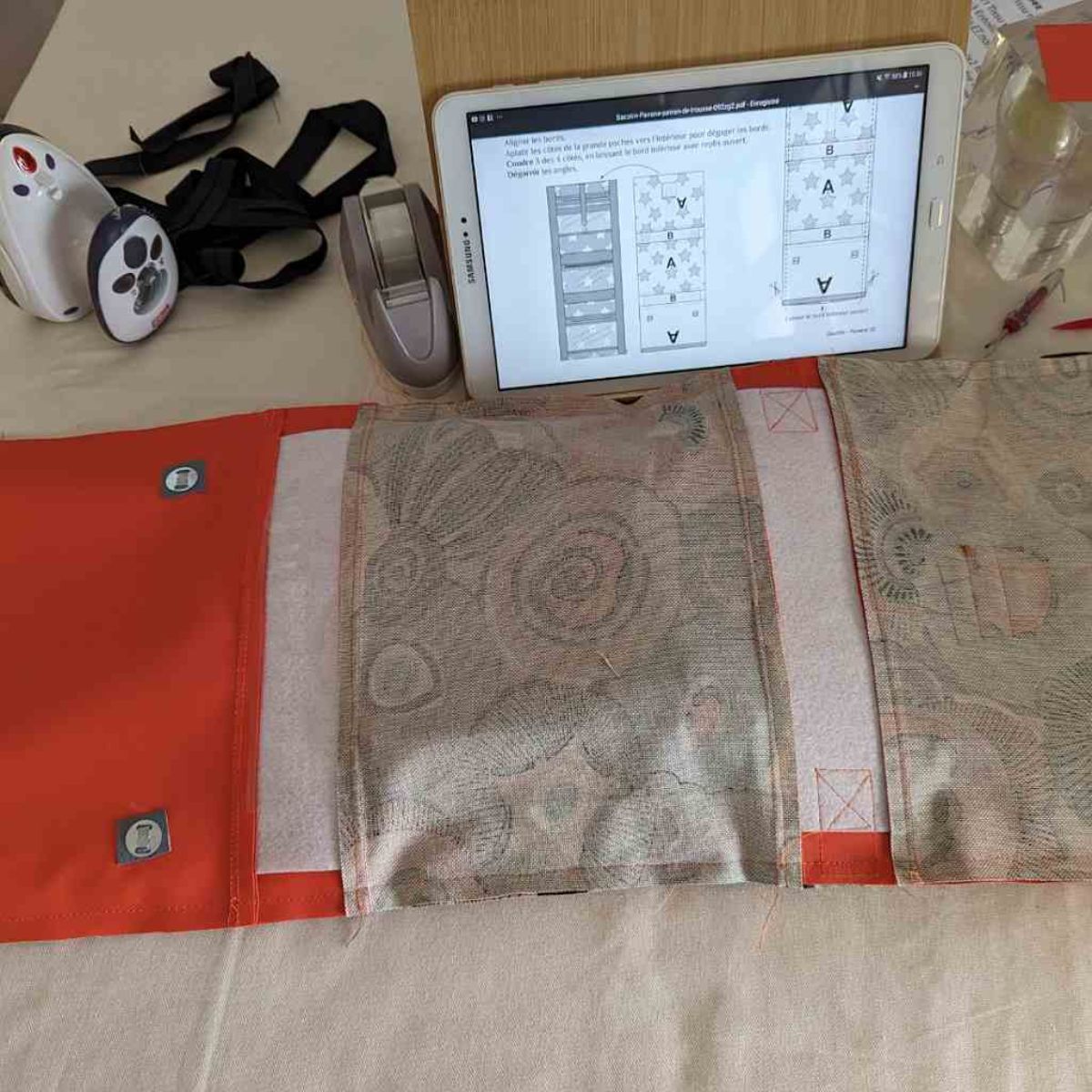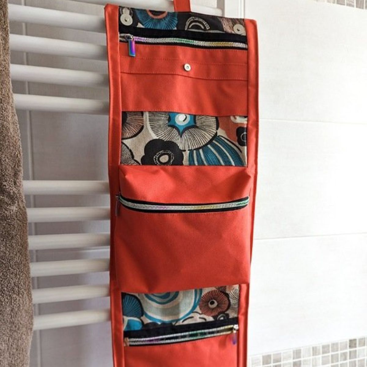 Le patron Pavane de Sacôtin propose une trousse modulable qui se déplie pour révéler plusieurs compartiments organisés. L’idée ? Pouvoir accrocher sa trousse ouverte avec un mousqueton et avoir tous ses produits sous les yeux sans fouiller.